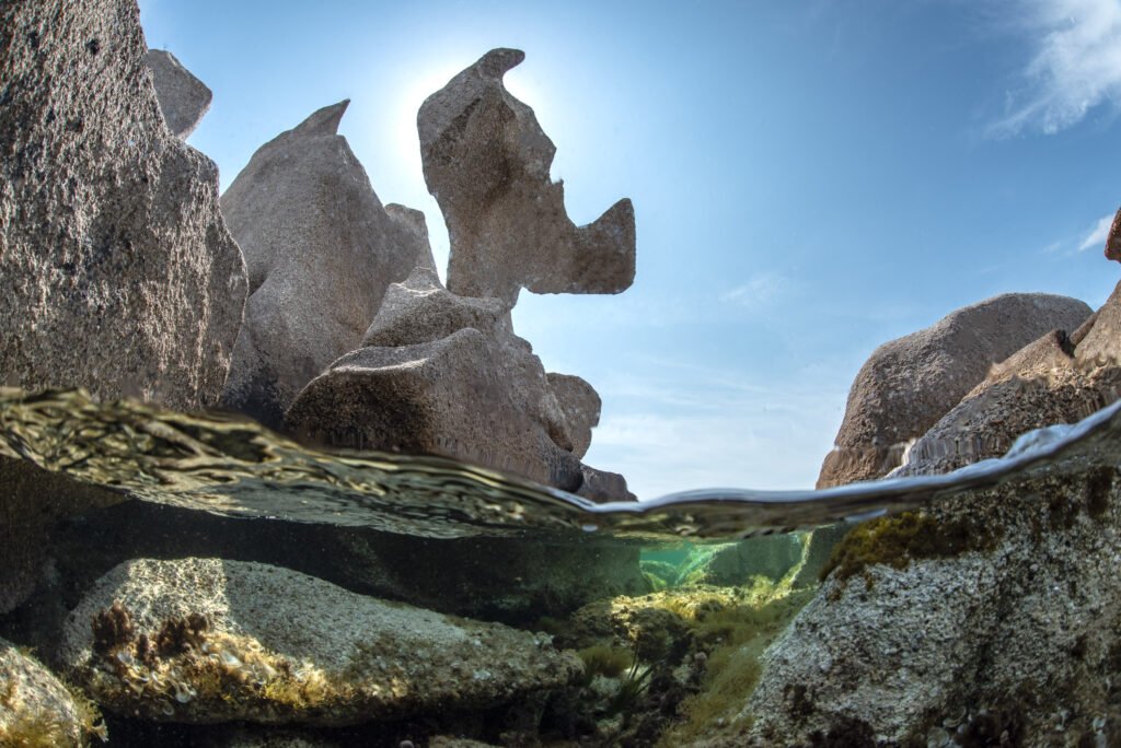 Deux mondes, une image. La terre et la mer séparées par une surface fragile.